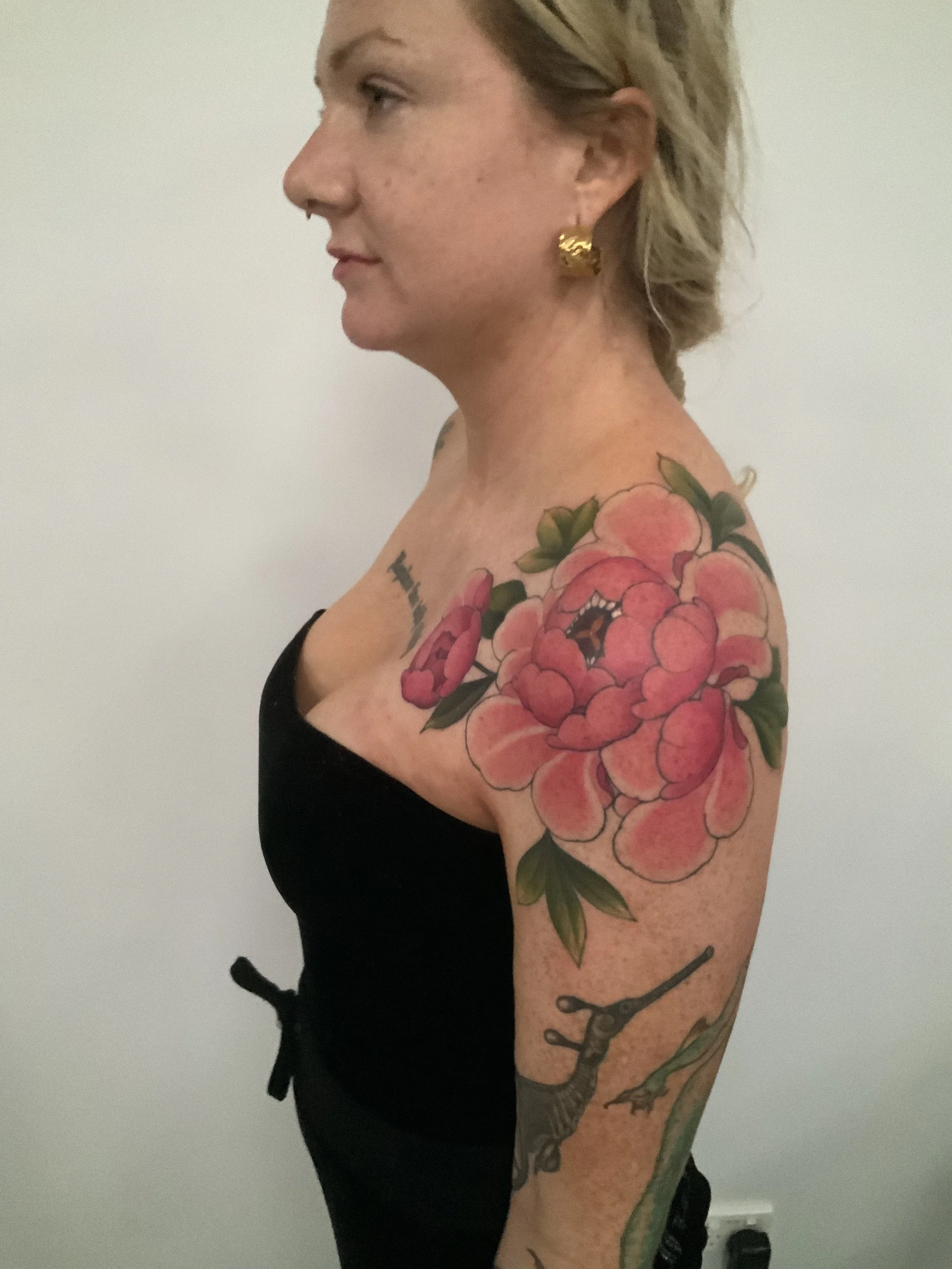 My name is Brooke Steele, my pronouns are she/her and I've been tattooing nine years. I have an interest in dark and supernatural Japanese style tattoos as well as dynamic floral designs.